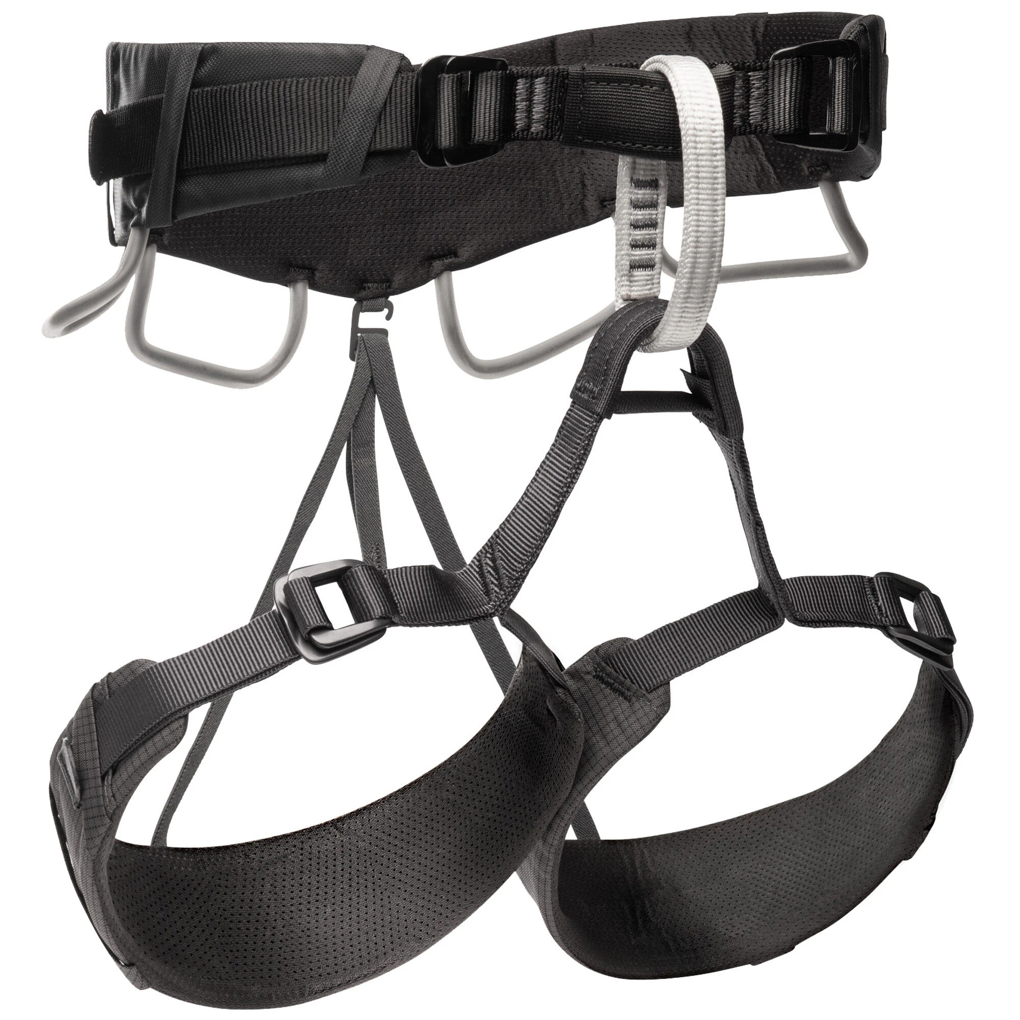 The Black Diamond Momentum 4S harness features maximum adjustability and range of fit. Two Speed buckles on the waistbelt and one on each leg loop allow for an incredible range of fit for multi-season and multi-climber use, while the tall, bullhorn-shaped waistbelt improves comfort during long belays.
