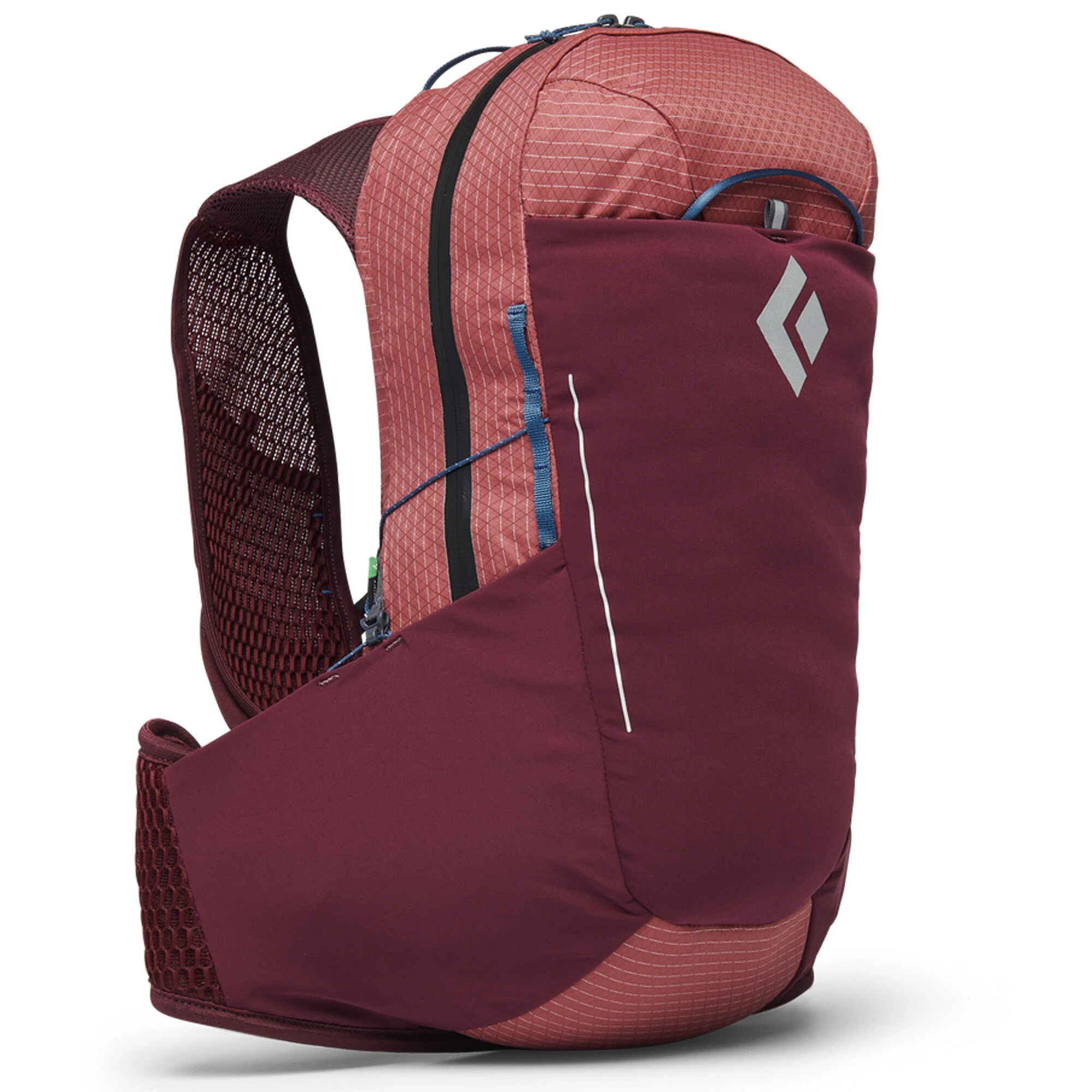 Black Diamond Pursuit 15 Backpack — Designed for tagging summits and scrambling in the high alpine, the Women’s Pursuit 15 Pack carries everything you need for a day of light and fast mountain travel. With a harness design inspired by BD’s Distance series, the Pursuit Daypacks are built with a custom “BD Continuous Fit Harness” with a seamless “wing” body construction that contours to the body for maximum comfort on the move. A women’s specific fit in the shoulders, chest, and hips ensures all-day comfort. The quick pull compression system adjusts depending on your load. With quick access side pockets and easy access trekking pole storage, snacking and stashing is easy on the move. Pursuit Daypacks are made from 100% recycled body fabrics with a breathable back panel. The pack includes an external hydration storage pocket.