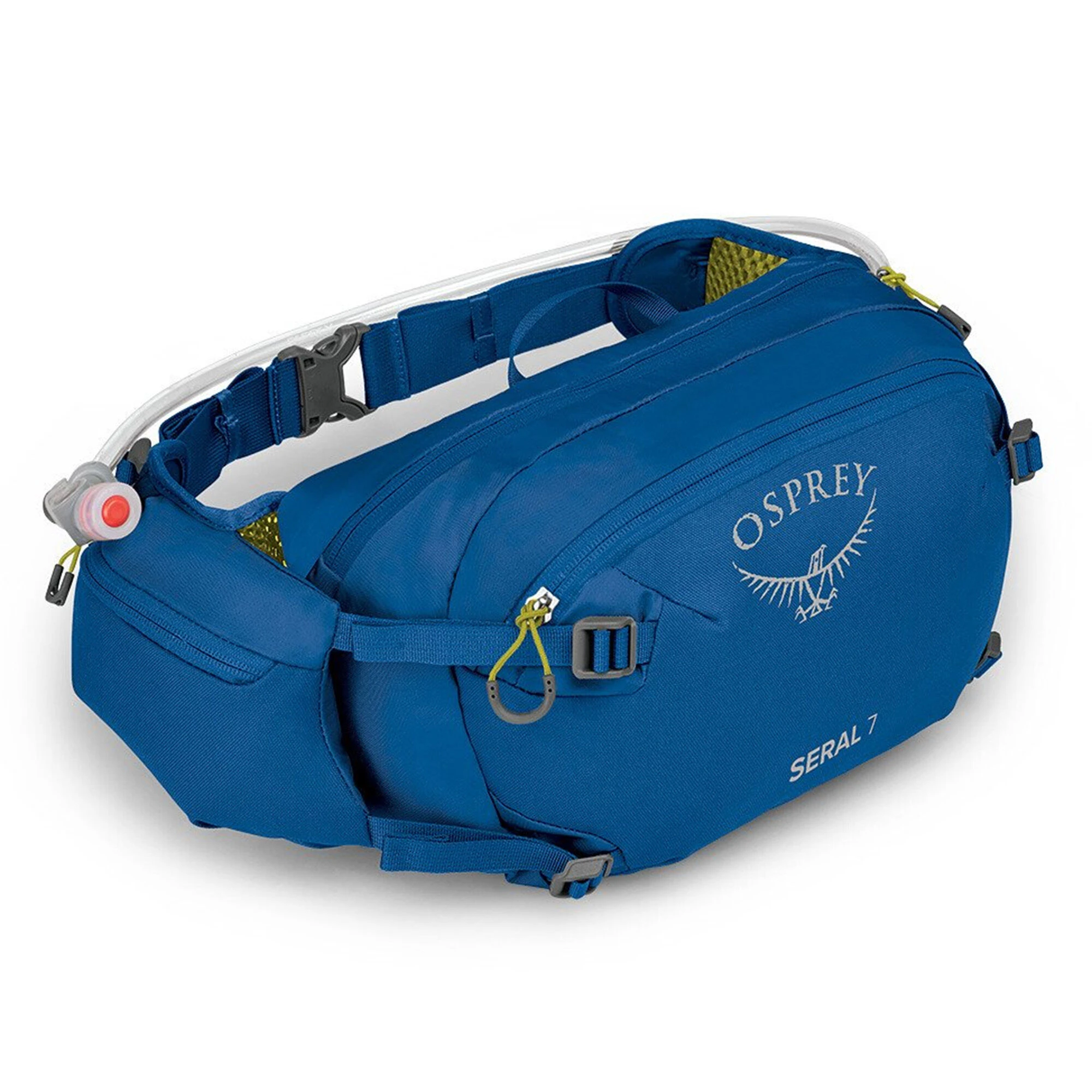 Osprey Seral 7 — Prefer an off-the-back hydration solution instead of an over-the-shoulder pack? The 7-liter Seral waist pack features a next-gen 1.5-liter Hydraulics reservoir and a zippered main compartment and hipbelt pockets fit your spare tube, patch kit, CO2 inflator and more. Compression straps pull the pack into your lower back and wrap around your hips for supreme stability, even over technical terrain.