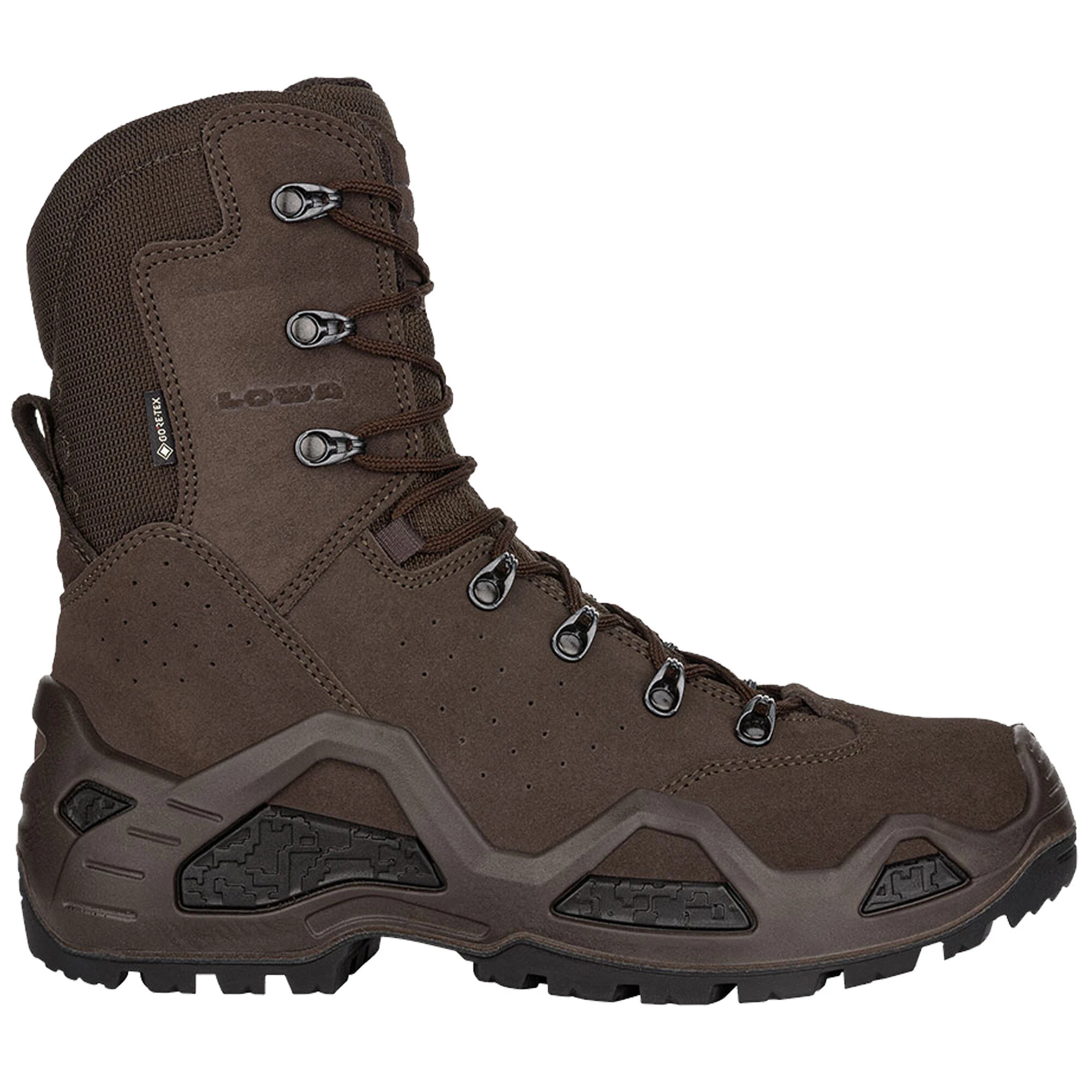 LOWA’s proven Z-8S GTX has been certified to comply with EU PPE regulations and has been updated with the LOWA® Tactical Z Trac® outsole that meets the SRA standard for slip resistance. It’s an 8” high rugged, multi-function boot that’s designed for demanding missions while carrying large packs over varied terrain, and combines the walking comfort of a hiking boot with the support and protection of a hard duty, backpacking boot plus instep protection against rope abrasion while fast-roping. Durably waterproof/breathable.