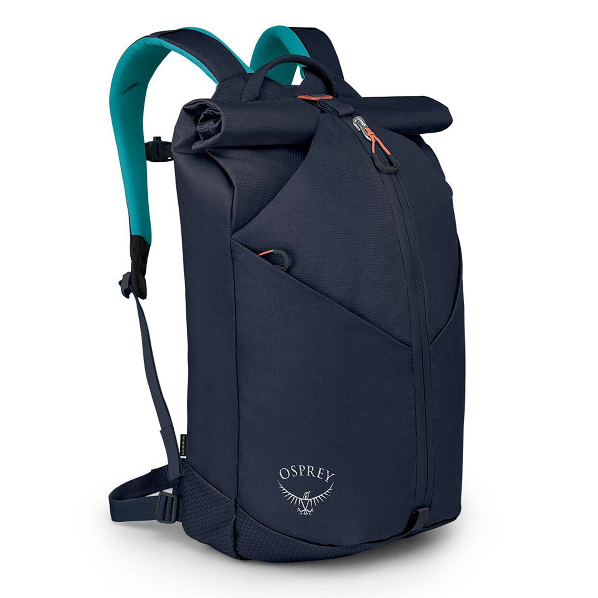 - Roll top closure with vertical zip to expand access and visibility into the main compartment; with adjustable webbing and aluminum hook
